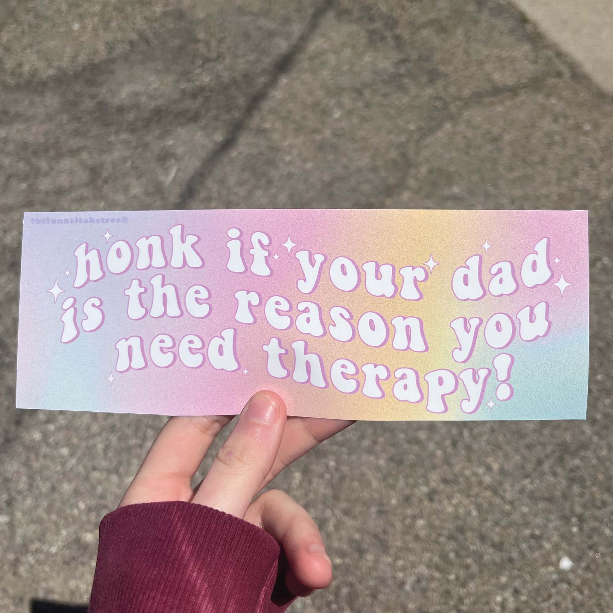 ✨Honk if your dad is the reason you need therapy Bumper Sticker 🚗
