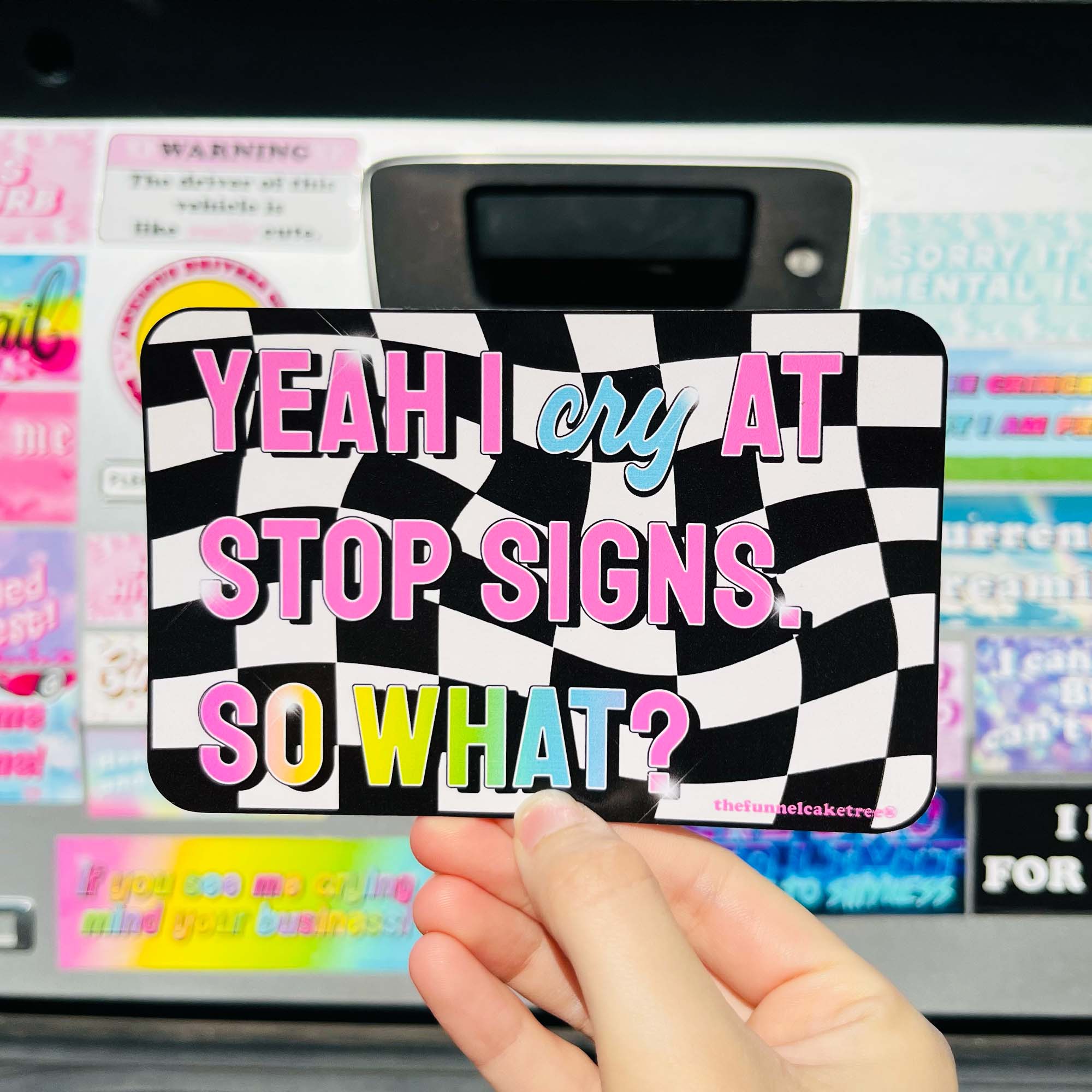 Glossy waterproof bumper sticker for the emotionally unhinged but self-aware driver tears optional.