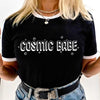 Cosmic Babe design features white retro lettering with stars