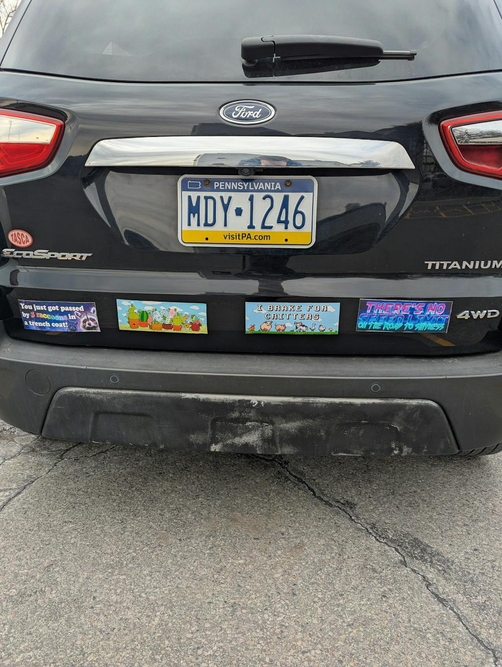 over the years i have ordered numerous stickers from fct and they have hit every single time. unfortunately, i think i have hit my limit. so until i get a new car i’ll have to lay off the stickers for a while. but these are by far the best bumper stickers i’ve bought!