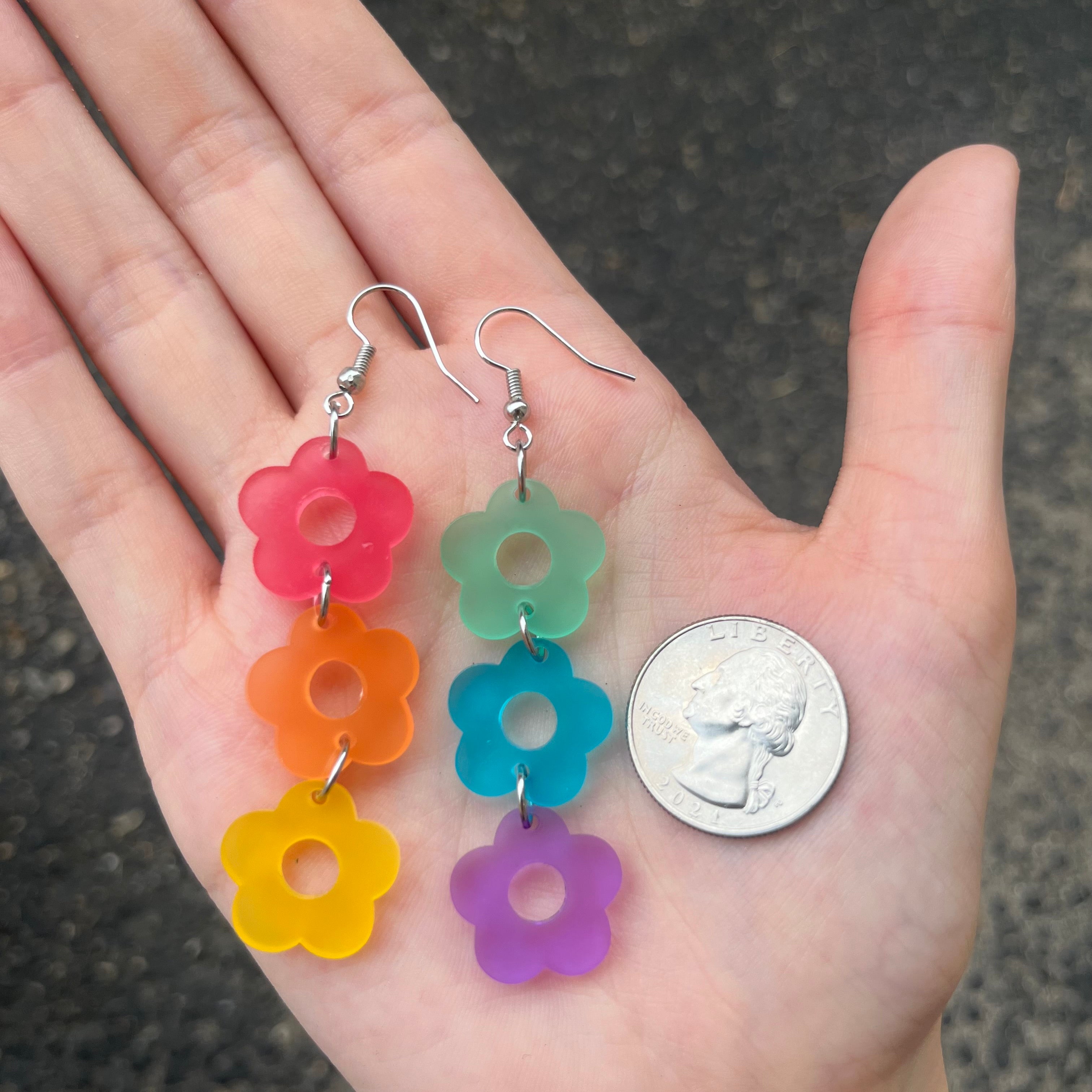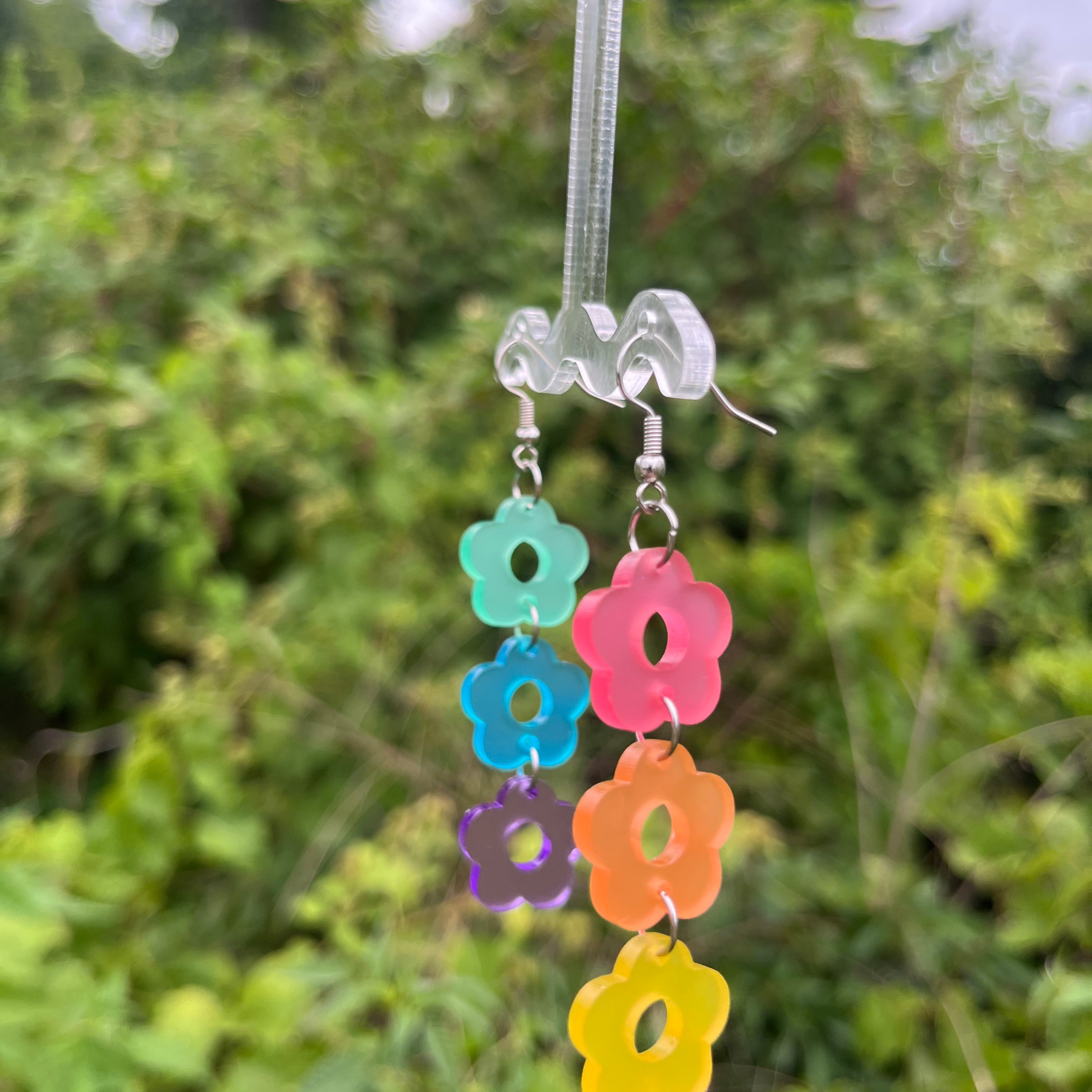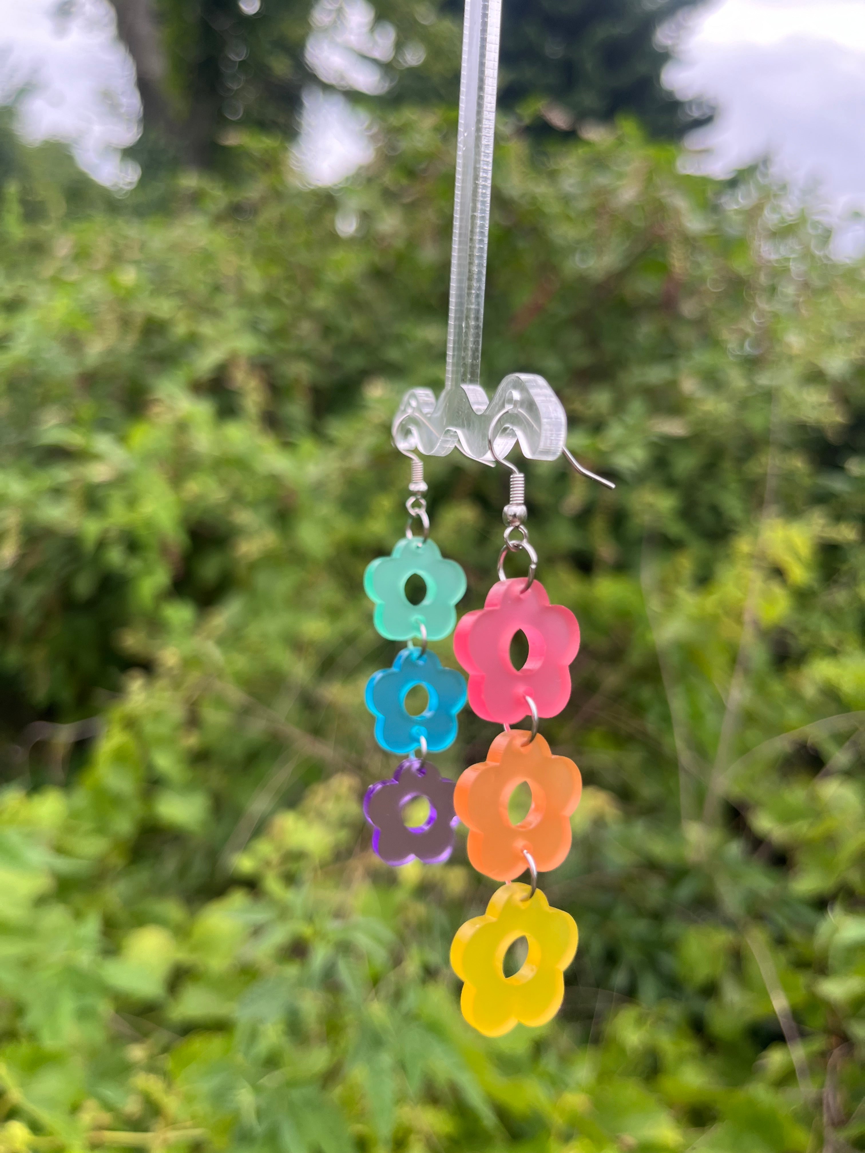 Rainbow Daisy Dangle Flower Acrylic Earrings