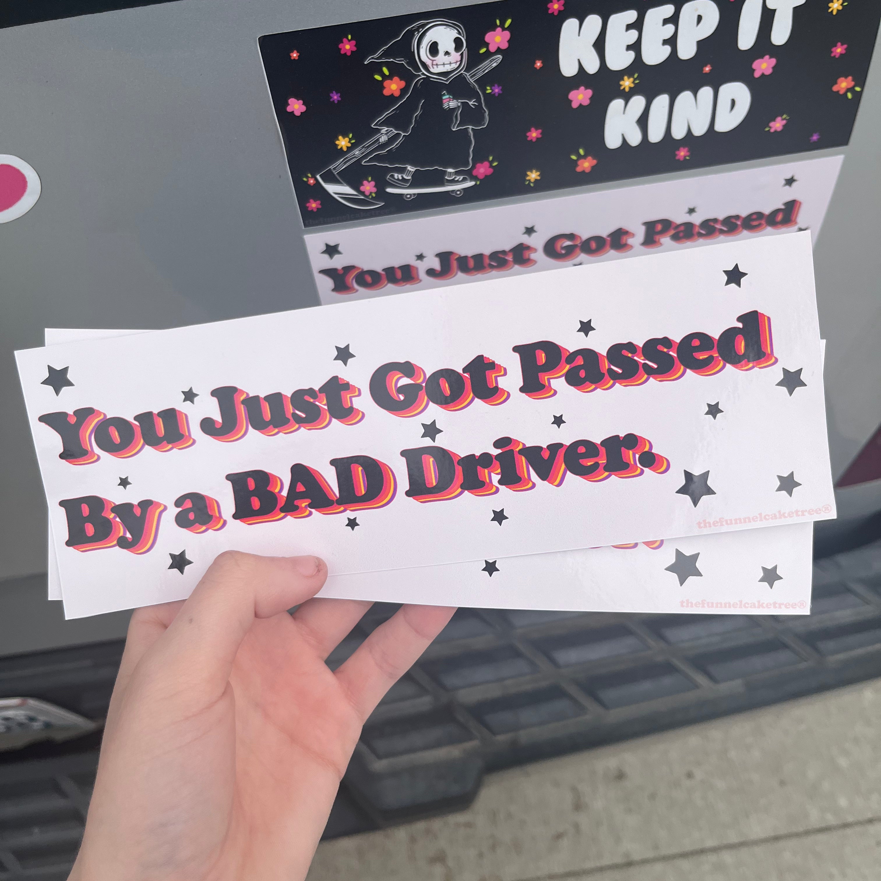 Our Bumper Stickers are also available in our new patented ReStickables⢠, all the fun with zero commitment.Ā ReStickables⢠are removable, movable, reusable fabric stickers, basically magic. āØ